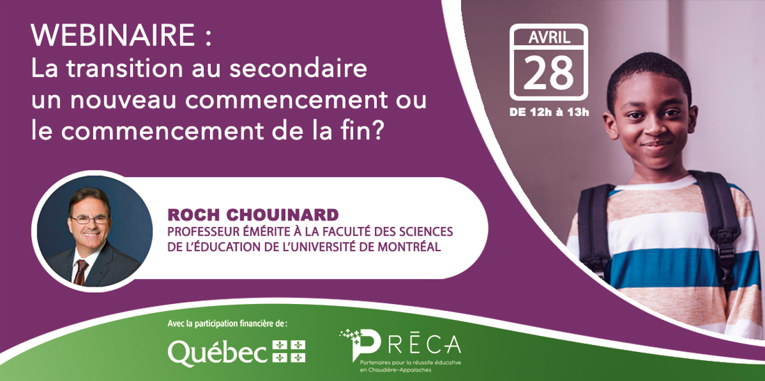 Webinaire |Tous les élèves sont plus ou moins affectés par le passage au secondaire. Parce que les environnements scolaires du primaire et du secondaire sont très différents et que cette transition scolaire a lieu en même temps que les élèves connaissent des transformations psychologiques et physiologiques importantes, elle s’avère, pour plusieurs, une des plus difficiles à réaliser. Pour certains, elle constituera même un jalon majeur du processus qui les mènera au décrochage.