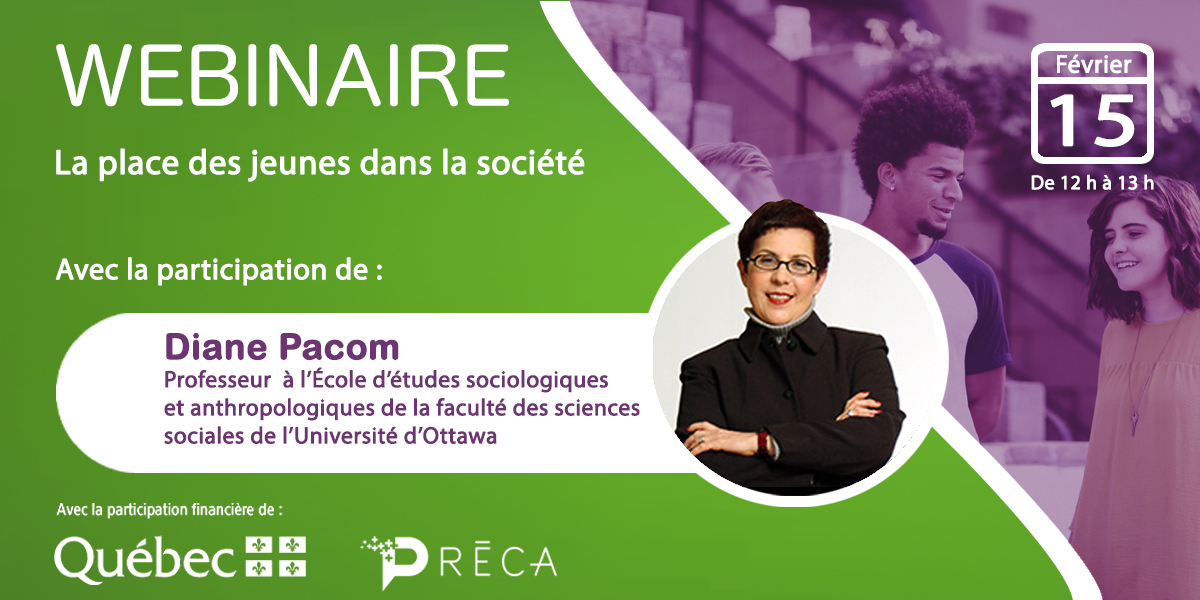 Webinaire |Mme Diane Pacom, dans cette conférence, présente la place des jeunes dans la société d’un point de vue sociologique ainsi que le concept « jeune ». Le comportement des jeunes et les liens entre eux et les adultes, les réalités actuelles des jeunes, les études qui se rallongent, les premiers emplois, l’accès à l’emploi et finalement comment ces jeunes deviennent des citoyens et donc la place des jeunes dans la cité sont les principaux aspects abordés.