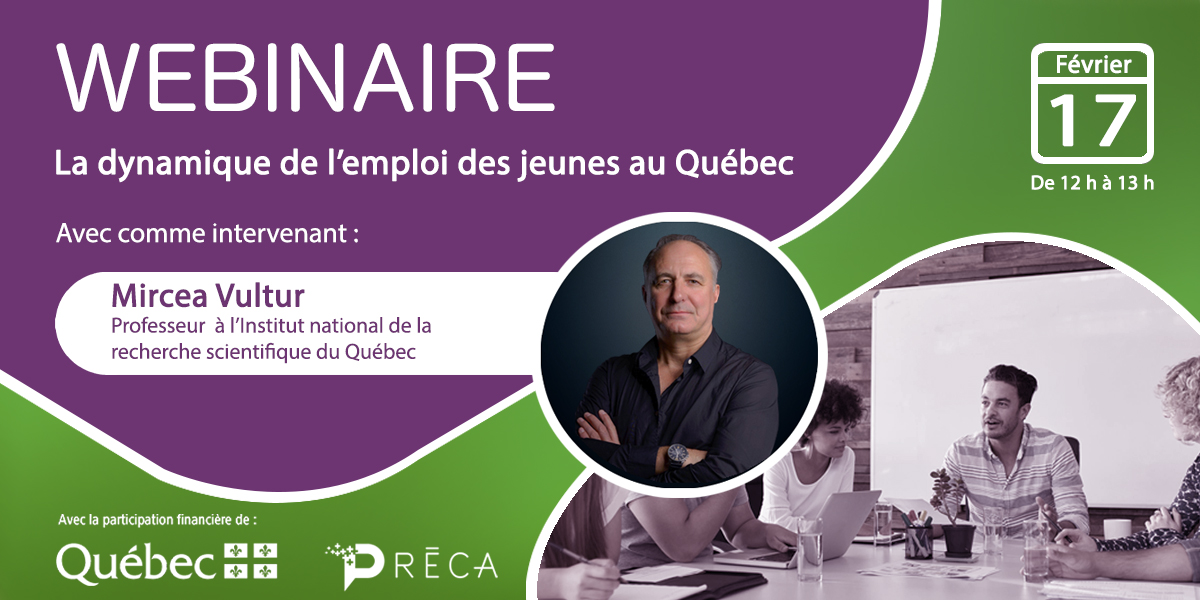 Webinaire |L’objectif de cette conférence est d’offrir un portrait dynamique de l’emploi des jeunes au Québec au cours des dernières années. Dans ce webinaire, le professeur Mircea Vultur présente les tendances démographiques, les indicateurs d’insertion professionnelle, les effets de la pandémie sur l’emploi, la pénurie de main-d’œuvre ainsi que les valeurs au travail des jeunes seront les principaux aspects abordés.