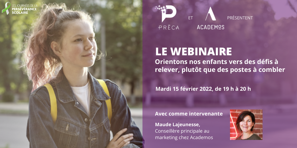 Webinaire | Maude Lajeunesse, conseillère principale au marketing chez Academos, aborde dans ce webinaire la question des aspirations professionnelles de nos jeunes. Les choix décisifs concernant leur avenir génèrent un lot de stress autant pour l’adolescent que son parent. Des propositions de ressources pour initier et faciliter cette discussion font également partie de la discussion.