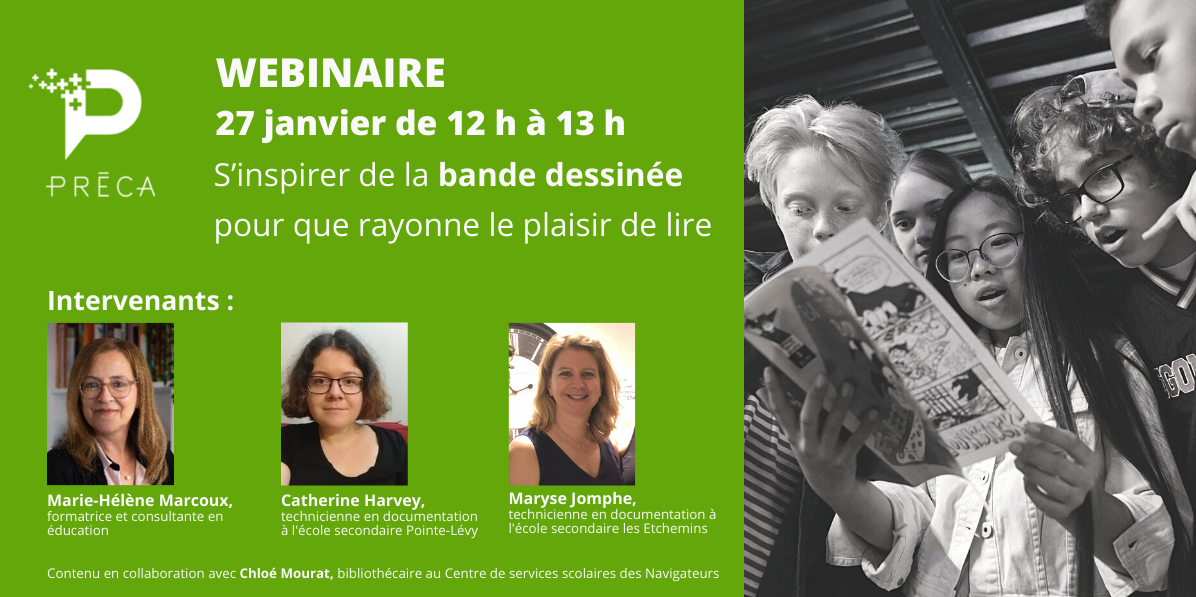 Webinaire|Marie-Hélène Marcoux, formatrice et consultante en éducation, et les deux techniciennes en documentation Catherine Harvey et Maryse Jomphe ont réalisé un webinaire sur la valorisation de la BD pour favoriser la motivation à lire des adolescents.